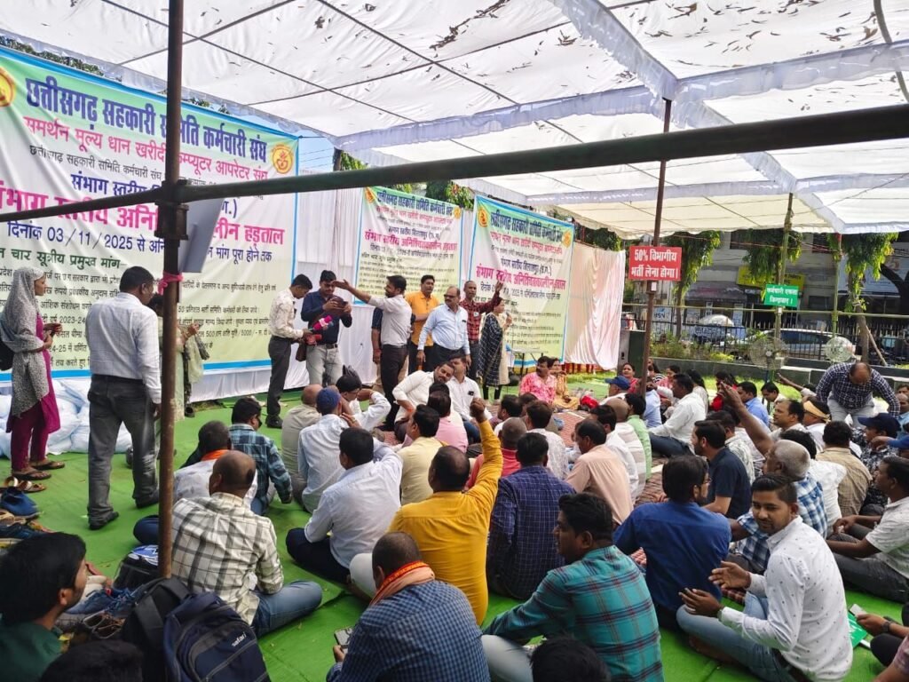 छत्तीसगढ़ समर्थन मूल्य धान खरीदी ऑपरेटर संघ के बैनर तले